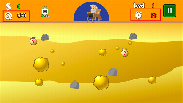 2、在規(guī)定的時間內(nèi),抓住相應(yīng)的金礦獲得游戲目標(biāo)分?jǐn)?shù)