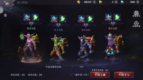 哥布林守護(hù)著神秘的寶藏,通過挑戰(zhàn)哥布林,搶奪他守護(hù)的藍(lán)鉆寶箱和魂石。通過升級(jí)寶藏,可以搶奪更稀有和更豐厚的國王寶藏。