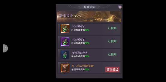3、可以使用經(jīng)驗(yàn)藥水(提高50%經(jīng)驗(yàn)收益)以及持續(xù)不斷的釋放群招技能等快速殺敵,獲取經(jīng)驗(yàn)。