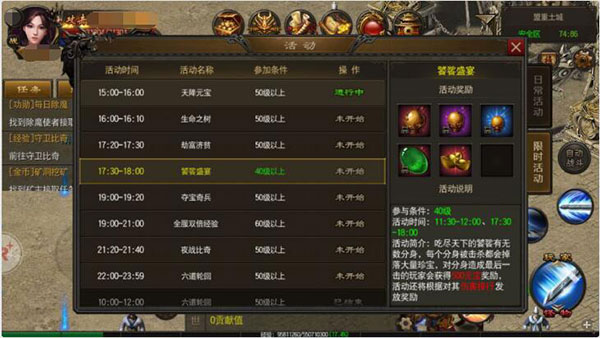 守衛(wèi)比奇每天可以完成3次, 每次的通關(guān)都可以獲得大量經(jīng)驗,花費元寶可以多倍領(lǐng)取。
