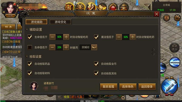 當你沒有時間玩的時候,在線掛機升級可以滿足的你快速升級。找一個怪物刷新多的點,記得一定要吃多倍經(jīng)驗符,然后設(shè)置吃藥,自動回城。這樣就可以安心做其他事,也能不錯過經(jīng)驗。