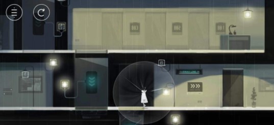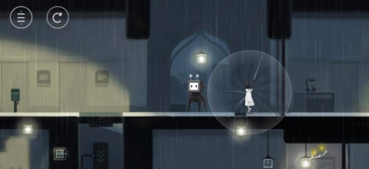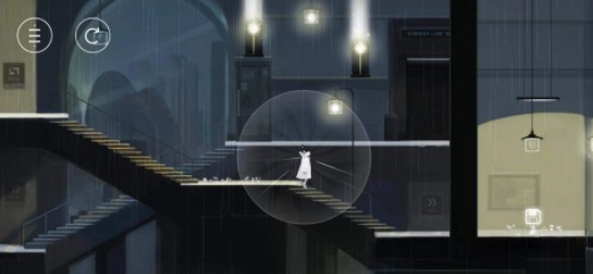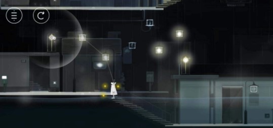 第一步:進(jìn)入游戲畫面,直接往右邊走,用手指將前方的燈光拖到黑色燈柱處,然后去最右邊吸收燈光,走到掉下來的燈柱處進(jìn)入下一個(gè)場景。