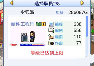 3、前期招聘不到這些強力的員工,要先發(fā)展公司,第四年后擴大公司規(guī)模招聘一些職員進來,游戲獲得雜志評價32分的時候就可以進一步擴大公司規(guī)模,可以招聘更高級的員工。