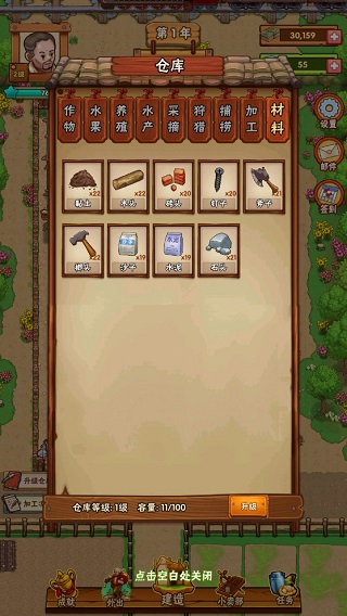 記住:倉(cāng)庫(kù)有容量限制,升級(jí)倉(cāng)庫(kù)可以提高容量!