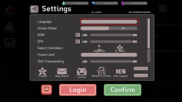 1、游戲剛進(jìn)入是英文,點擊上方的設(shè)置按鈕