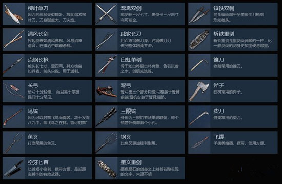武俠乂遠(yuǎn)程武器分為長弓,弩弓,飛刀,眼銃和鳥銃五種。