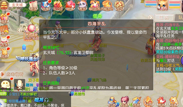 做完主線和師門任務(wù)就到30級了,然后就可以參加很多日常活動了。首先就是回合游戲最常說的抓鬼活動,也就是四海平亂,最少需要3個人,最多5個人組隊完成,每天前40次獲得多倍獎勵,之后可以繼續(xù)完成獲得單倍經(jīng)驗獎勵。(前幾天每天可以完成220個,以后每天大概就100個左右,之后每次就幾百經(jīng)驗了就沒必要做了。)