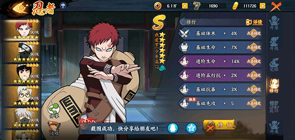 C等級的忍者收集碎片數(shù)量最少。而等級越高的忍者所需要收集的碎片數(shù)量也就越多。S級忍者需要收集80個碎片才可以合成一個人,難度可謂是相當?shù)母摺?br /> 收集足夠忍者之后,玩家可以消耗金幣來幫助忍者升級。而玩家參加角斗場或者是組隊對戰(zhàn)的時候,所能應用的只有一個忍者,玩家派遣小隊作戰(zhàn)的時候則可以派三個忍者。單一忍者等級對玩家整體戰(zhàn)斗力的影響非常少,忍者越多,忍者整體的培養(yǎng)程度越高,玩家整體的戰(zhàn)斗力也就越強。