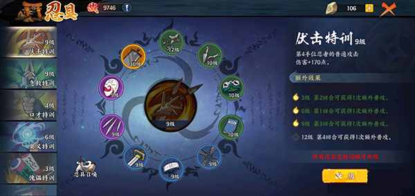 忍具玩家并不可以在游戲中直接使用,但是忍具的等級越高,玩家的戰(zhàn)斗力提升也越高。忍具屬性還可以通過洗煉石來進行洗練,額外增加玩家的戰(zhàn)斗力。