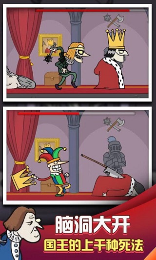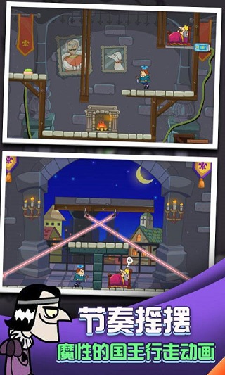 2、當(dāng)角色走近國(guó)王時(shí),長(zhǎng)按屏幕,當(dāng)上面的蓄力條滿時(shí),角色揮刀刺向國(guó)王。但在蓄力期間,一旦發(fā)現(xiàn)國(guó)王有回頭的動(dòng)作,手指要趕緊離開屏幕,以防被抓。