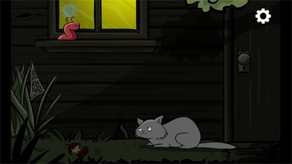 第二關(guān):點(diǎn)門把,貓來(lái),點(diǎn)蛛網(wǎng),點(diǎn)爛蘋果,蟲吐漿,貓走,點(diǎn)貓,貓又來(lái),點(diǎn)門上樹影,進(jìn)洞,狂點(diǎn)4個(gè)鈕,出來(lái),點(diǎn)貓,貓死,點(diǎn)門把,過(guò)。