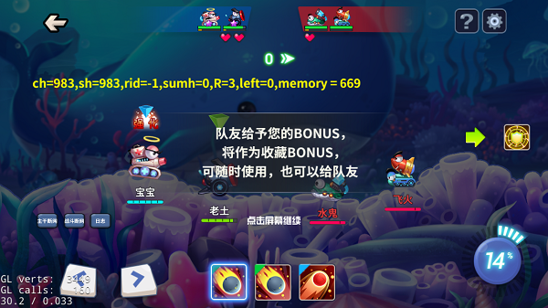 不知道老鐵們在玩游戲的過程中有沒有發(fā)現(xiàn),當(dāng)我們命中敵人時下方會出現(xiàn)三個Bonus供玩家選擇,玩家可以在三個Bonus中選擇任意的一個Bonus進行使用或收藏。收藏后的Bonus可以隨時使用,也可以將自己的Bonus送給任意的一名隊友。但是需要注意的是,每名玩家最多只可以收藏兩個Bonus哦!