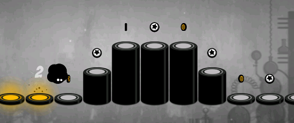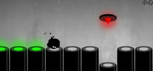 遇到一個尖刺時候比較簡單,只需要找準小墨球下落的時機點擊屏幕就可以完成跳躍,如果太早或者太遲的話就會碰到尖刺死亡。遇到兩個尖刺的話就需要連續(xù)點擊了,找準節(jié)奏的同時也需要把控好手速。