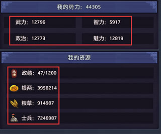 政治—政治屬性的高低決定大人每次經(jīng)營農(nóng)產(chǎn)獲得的糧食數(shù)量~而糧食主要用來招募士兵,關(guān)卡戰(zhàn)斗同樣也是需要士兵的喲~