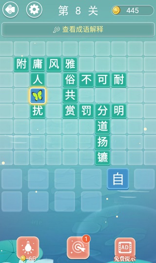 1、精挑細(xì)選的成語(yǔ)詞庫(kù)。2、改進(jìn)的填字玩法。