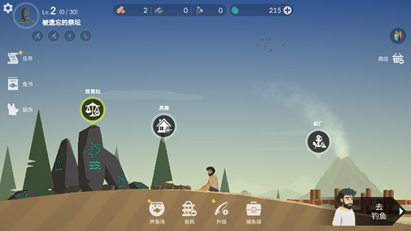 2、玩家需要通過釣魚來獲取資源,換取工具與獲得鉆石