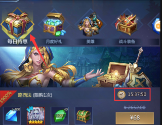 2、每日特惠:各種類型的禮包,英雄、加速卡、資源、裝備等滿足各種要求,購買后會升級下一檔位同品種道具。配合當日活動來沖刺更好成績最佳;