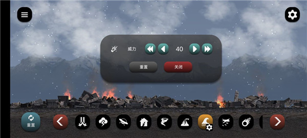 1、打開失控城市模擬器游戲后,在下方可以對城市選擇行動,比如放煙花或者放炸彈,再次點(diǎn)擊同一個行動就可以更改威力大小或者關(guān)閉了。