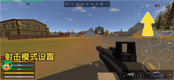1、進入游戲界面,點擊右上角的菜單設置,可以看到當前射擊的模式