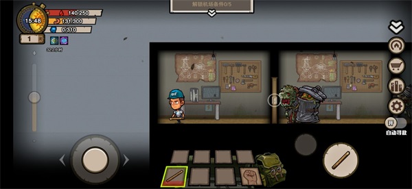 拿完初始物資直接去最近的一,二星房,暫時不用去安全屋,先把背包搜滿?,F(xiàn)版本背包大幅度擴大(以前一個二星房就搜滿了甚至運氣好可能拿不下),而且有三天的減傷增益,三天內(nèi)死亡免費復(fù)活(屬性補滿),不用怕二星房掉血。前往一星房前期喪尸可以盡量刷掉,會掉物資(物資種類有點看臉,除了鐵,零件,木材和布料外,還會掉落干脆面和火藥,甚至還有罐頭和子彈)。木棒耐久比之前不知道高了多少,沒必要空手打怪,趁有精力的時候可以多打點(畢竟二星房不太用的著近戰(zhàn)打怪,怪一般有好幾個),等沒精力了就不用打喪尸了。