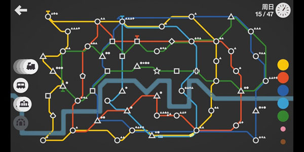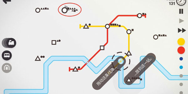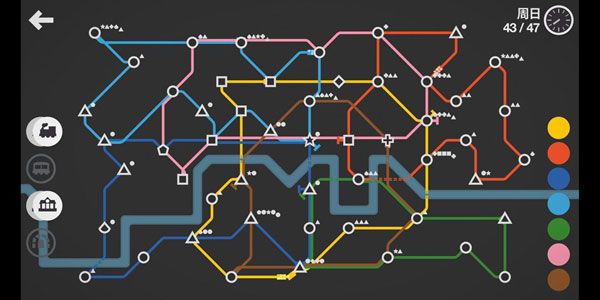車(chē)站不會(huì)擁堵,專注提升運(yùn)輸效率。這個(gè)模式與正常模式一樣隨時(shí)間推移會(huì)隨機(jī)出現(xiàn)站點(diǎn),會(huì)獲得資源,但是車(chē)站永遠(yuǎn)不會(huì)擁堵,這就讓玩家沉浸于提升效率,不斷優(yōu)化,設(shè)計(jì)出最完美的地鐵線路,這很考驗(yàn)玩家規(guī)劃與設(shè)計(jì)能力,同時(shí)還要考慮資源的合理利用。