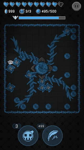1、曼陀羅花:房間為空,初始花在中央,花的行動(dòng)2回合一循環(huán),一回合行動(dòng)3次。奇數(shù)回合不動(dòng),觸須四處伸展并以花為圓心旋轉(zhuǎn),每次行動(dòng)生出小細(xì)胞,小細(xì)胞隨時(shí)間長(zhǎng)成一個(gè)形似手里劍的路障,角色撞成型前的細(xì)胞boss扣血。偶數(shù)回合每次行動(dòng)移動(dòng)至角色剛剛所在位置并消除沿途的路障。(路障可用翅膀飛過去)