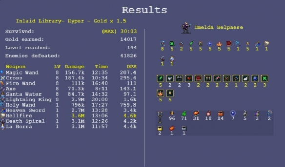 游戲內有7種基礎武器,按左→右的順序依次是鞭子,魔杖,小刀,斧子,十字架,圣經和火魔杖。
