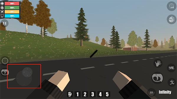 1、左下角的虛擬搖桿是控制人物的前進(jìn)或者后退。
