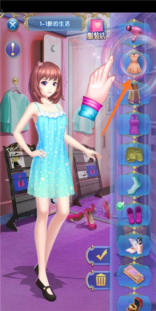 4、進入到新的生活之后,根據(jù)手勢指引,然后進行換裝;