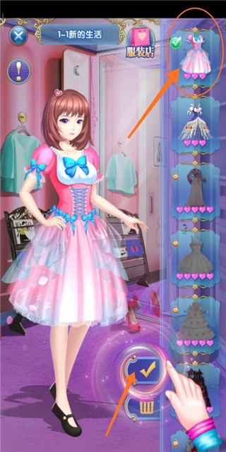 5、選中一套衣服,根據(jù)手勢換裝之后,點擊下方的確認鍵;