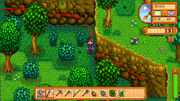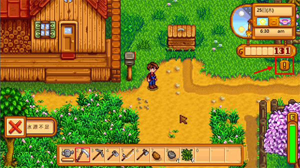 體力:當玩家進行一些操作時會減少一定量的體力,如釣魚、砍樹、鋤地等,可以通過溫泉和吃一些食物恢復。