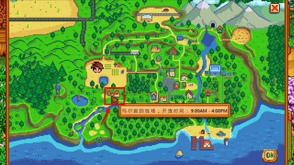 3、那么接下來就要在地圖上找到在瑪爾妮農(nóng)場了。位置:自家農(nóng)場右下側一點點。