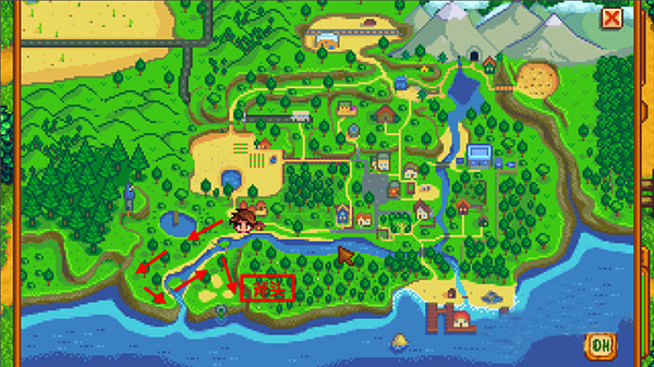 5、從自家農(nóng)場出發(fā)往南走(下面的一條路),然后往右一點點有兩座小木橋,走過去。