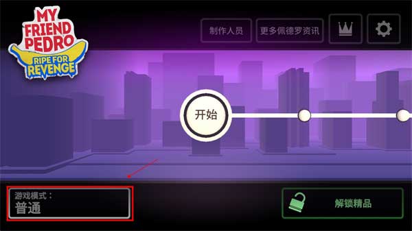 1、打開我的朋友佩德羅正版,首先我們選擇游戲模式,這里以普通模式為例,點擊開始進入游戲;