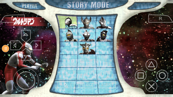 1、下載好奧特曼格斗進(jìn)化0游戲后點(diǎn)擊進(jìn)入,可以看到首頁,在左邊的上下箭頭選擇模式,選好后在右邊圓圈確定