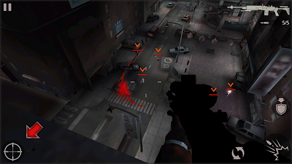 1、下載安裝好殺手2影子陰謀手機(jī)版,游戲開始我們將身處天臺上,并在一個(gè)掩護(hù)的狀態(tài)。點(diǎn)擊右側(cè)的盾牌箭頭圖標(biāo),主角將站起離開掩護(hù)。