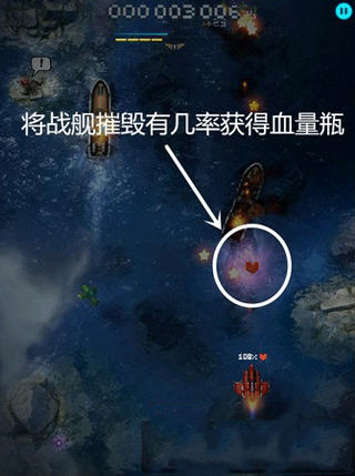 補(bǔ)充血量的方法:擊破戰(zhàn)艦(船)有一定幾率會掉落補(bǔ)充血量的血瓶,所以玩家如果血量不足的時候可以去打戰(zhàn)艦哦。