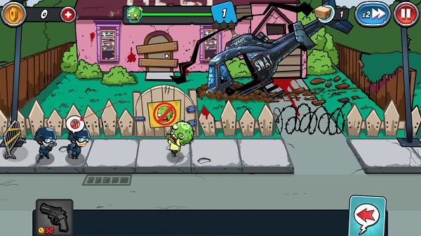 《警察大戰(zhàn)僵尸2(SWAT and Zombies Season 2)》是一款僵尸塔防戰(zhàn)爭游戲,特警大戰(zhàn)僵尸2無限星金幣版有著各種不同種類的僵尸類型,玩家可以自由挑選特警,布置出自己的專屬應(yīng)對僵尸陣容。游戲不僅有著富有挑戰(zhàn)性的戰(zhàn)斗場面,更有簡單易控制的用戶界面,它不僅畫面清新明亮,還有著令人捧腹的故事劇情,快來為人類的生存環(huán)境提供助力吧!一款策略塔防類的手機游戲,主要圍繞特警對抗僵尸展開。游戲采用卡通版的畫風(fēng)精心繪制刻畫,呈現(xiàn)出多樣的畫面場景,還提供大量不同類型的武器等你收集,有各種僵尸需要你來征服,玩法模式多樣又精彩,給人無限的戰(zhàn)斗樂趣。