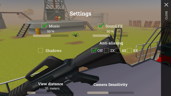 2、這里以火車防守模式為例,等待一會加載即可進入游戲,點擊右上角設置按鈕,可以調(diào)整游戲音效、畫質(zhì)、靈敏度等;