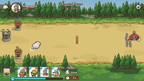 成功進(jìn)入關(guān)卡后,在界面的左側(cè)下方,分別是你可用的隊(duì)伍,藍(lán)色條能是你的能量,不同隊(duì)伍的招募需要對(duì)應(yīng)的能量才能進(jìn)行,比如炮兵需要4格、弓箭手需要3格、地雷需要2格、騎兵需要3格,后續(xù)玩家還能解鎖更多兵種。關(guān)于放置,只要滿足一定的能量后,拖動(dòng)屏幕上的兵種到戰(zhàn)場(chǎng)上即可