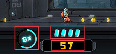 9、屏幕下方的正中央顯示的是玩家的生命值、連擊數(shù)和分?jǐn)?shù),生命值為0時游戲失敗,但可通過拾取藍(lán)色心形道具恢復(fù),玩家的連擊數(shù)越高,獲得的分?jǐn)?shù)也越高!