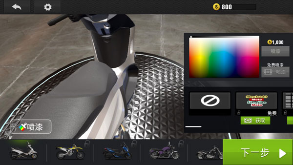 強(qiáng)化:顧名思義也比較簡單,利用金幣來加強(qiáng)摩托車的速度、加速和操控性。