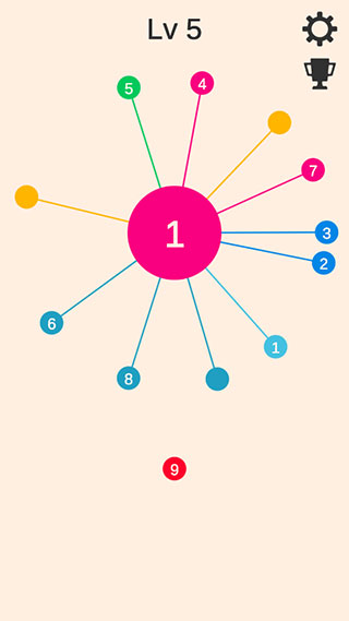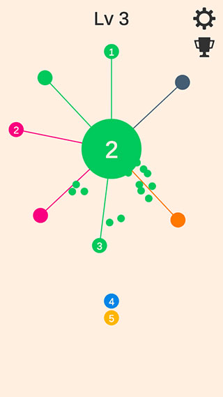 1、單擊屏幕以發(fā)射小球并將其插入大球2、每一定數(shù)量的級(jí)別都會(huì)有一個(gè)新的 游戲性,