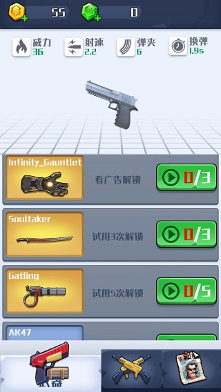 【多種槍械】除大家熟悉的SCAR、AK、MP5以外,還有武士光劍、無限手套、秒殺弓、加特林等傳說武器免費(fèi)試用,體驗(yàn)從未有過的特殊射擊手感~
