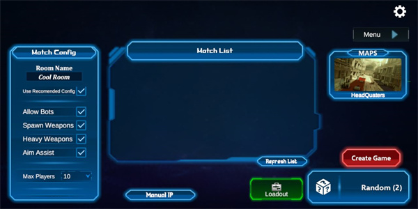 2、左側(cè)可以調(diào)整玩家人數(shù),選擇喜歡的武器、裝備,瞬間升級(jí)自己的戰(zhàn)斗力;