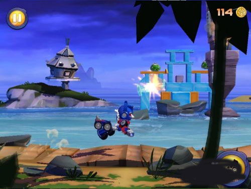4、操控變形金剛鳥(niǎo)在跑酷時(shí)射擊,消滅躲在障礙物種的機(jī)械豬。