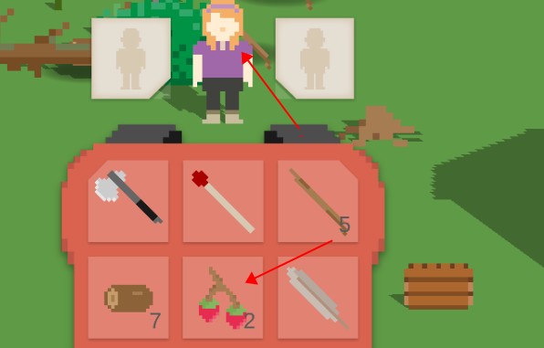 4、點(diǎn)擊樹木會自動砍樹,砍完后點(diǎn)擊掉落到地上的材料撿起。同理,點(diǎn)擊瓜果就可自動走過去采摘。