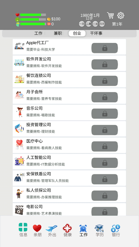 4. 技能提升:玩家可以通過(guò)不斷的學(xué)習(xí)和實(shí)踐提升角色的各種技能,例如溝通能力、領(lǐng)導(dǎo)力、創(chuàng)造力、健康管理等。這些技能的提升將有助于角色在生活中取得更好的成就。