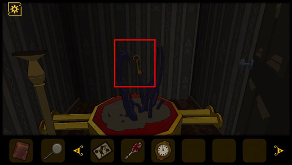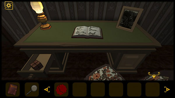 5、查看桌子抽屜,獲得道具和查看日記,將紅色機關石放入墻上的紅色凹槽中,回頭會發(fā)現(xiàn)進門處出現(xiàn)一只怪物,將門關上,注意門上的花紋