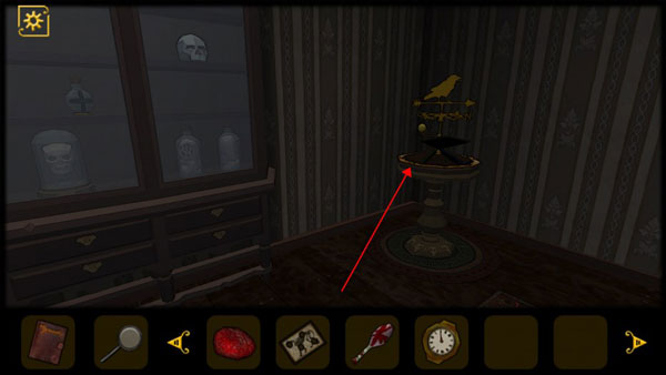 18、將鳥籠放到繩子上,將帶血的勺子放進去吸引蜘蛛,使得繩子下墜打開房間門